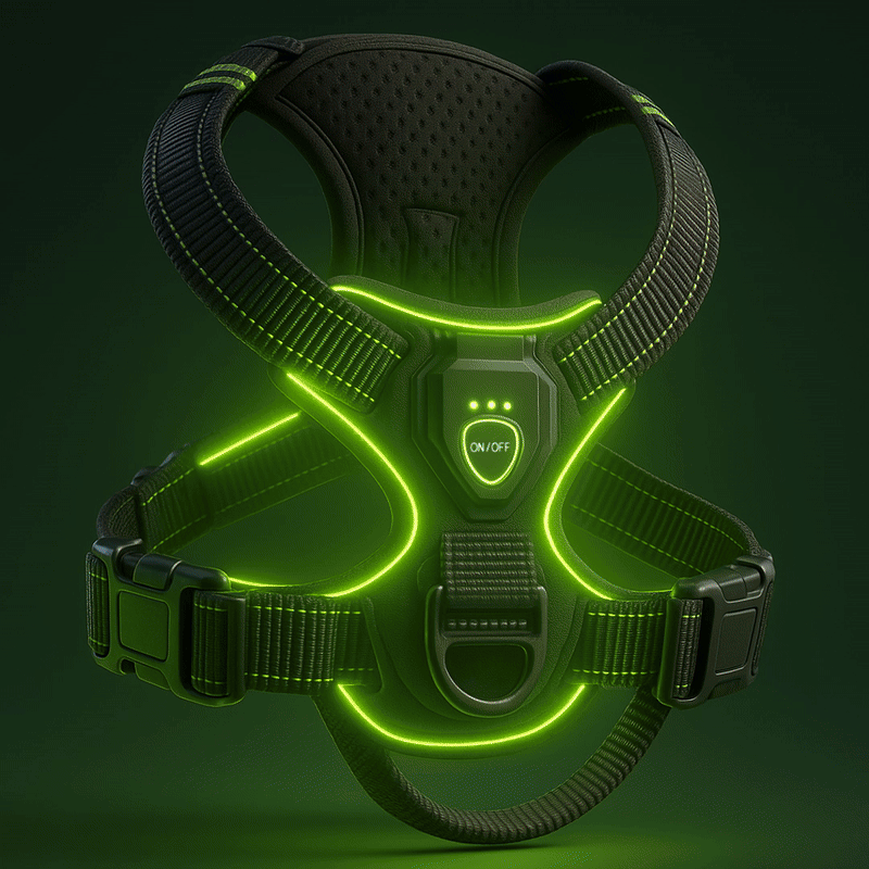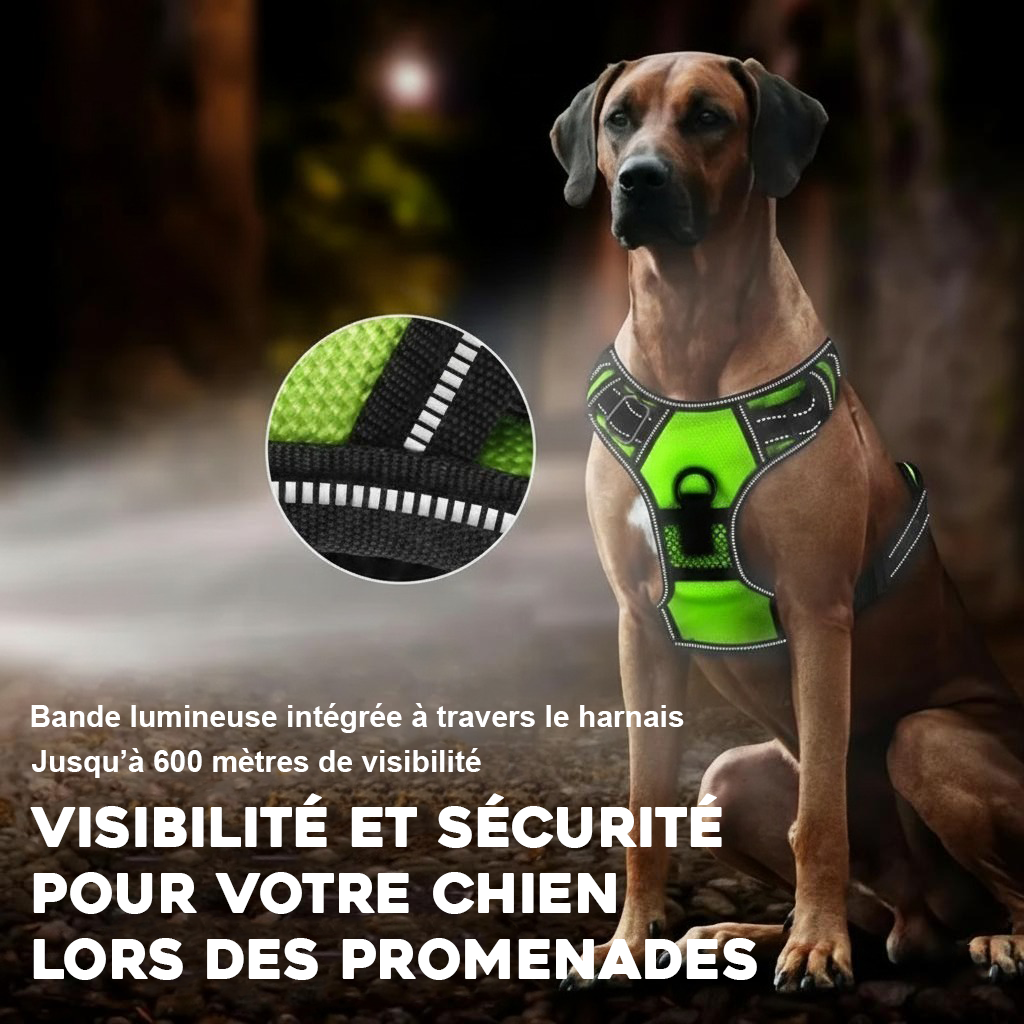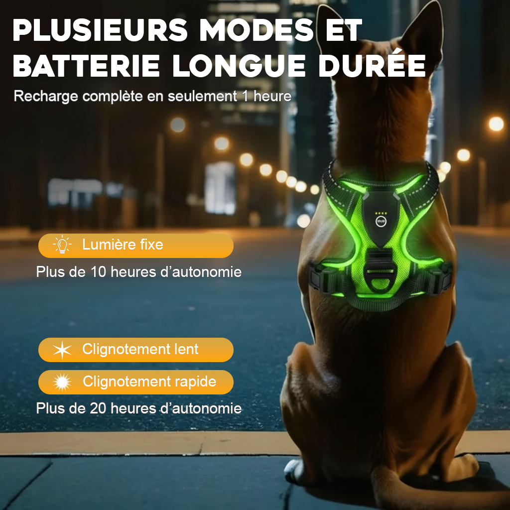 Un harnais lumineux pratique et fiable pour toutes vos balades nocturnes.